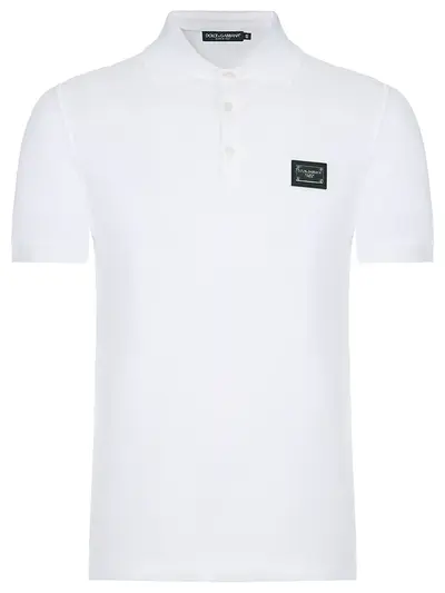 -Белое поло из фактурного хлопка-пике от DOLCE&GABBANA.
