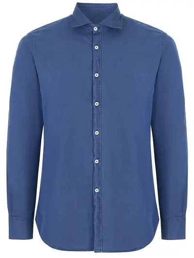 -Синяя рубашка из стрейч-хлопка под деним от CANALI.