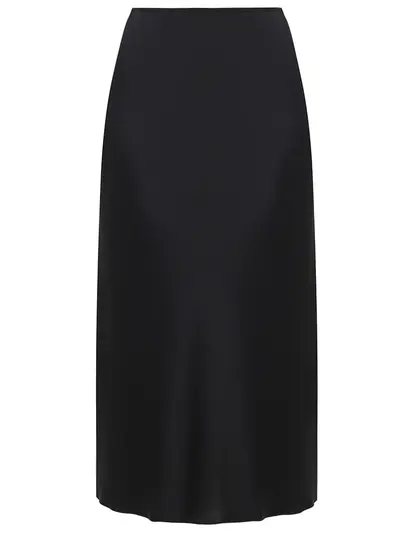 -Черная юбка-миди из легкого шелка от DOROTHEE SCHUMACHER. -Модель полуприлегающего кроя с завышенной посадкой и потайной молнией сбоку подойдет как для классических образов с блузами, так и для коктейлей в паре с жакетом и топом или корсетом.