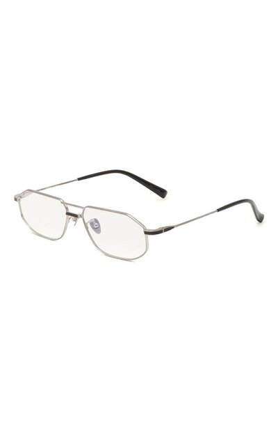 Команда марки стилизовала оправу с двойным мостом под авиаторы. Для изготовления аксессуара с узкими фигурными ободами, не загораживающими обзор, использовали ультратонкий титан с серебристым покрытием, которое долго не потеряет свой блеск. Сбалансированная модель с заушниками из отполированного ацетата комфортно садится и на мужском, и на женском лице.