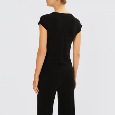 Чёрная футболка от Principe di Bologna станет основой множества образов. Модель выполнена из текстиля, в составе которого 67% вискозы, 29% акрила и 4% полиэстера. Благодаря акрилу в составе футболка прекрасно сидит не деформируется в процессе носки. Футболка подойдёт как база для праздничного наряда в комплекте с пиджаком, при этом самостоятельно такая модель тоже будет выглядеть стильно.