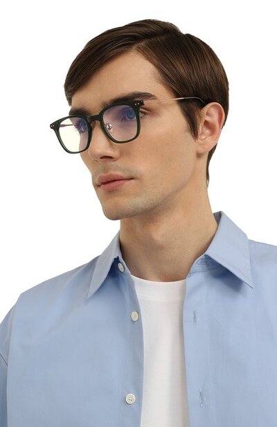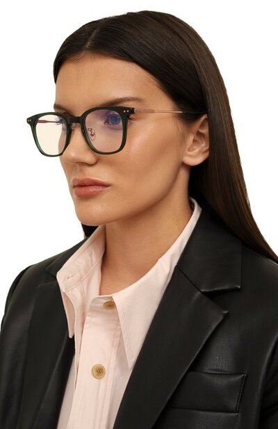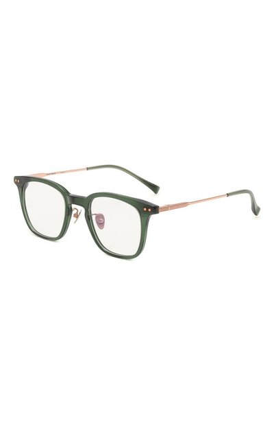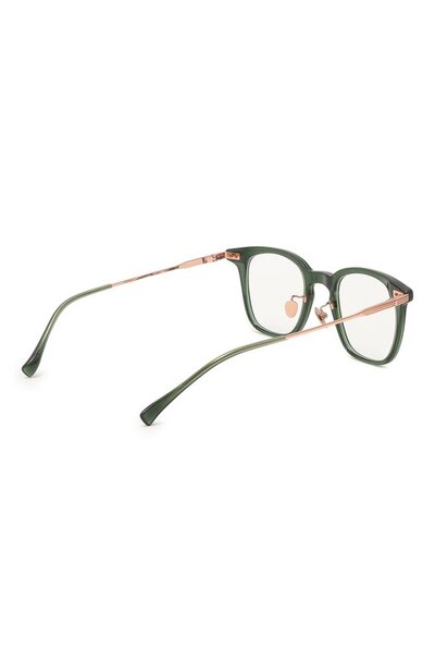 Зеленая квадратная оправа, подходящая и мужчине и женщине, может стать акцентной деталью образа. Аксессуар с подвижными носоупорами изготовили из отполированного до блеска ацетата и ультратонкого прочного титана с покрытием цвета розового золота. Такая модель почти ничего не весит и не вызывает усталость.