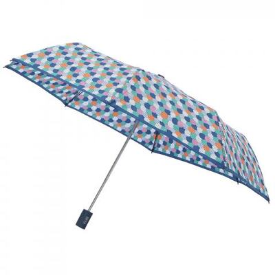 Компактный складной зонт-автомат от итальянского бренда Fabi. Зонт выполнен из плотной ткани с геометричным принтом. Благодаря компактным размерам, сложенный зонт легко уместится даже в небольшую сумку. Ручка выполнена из пластика и украшена логотипом Fabi. В комплекте чехол в цвет.