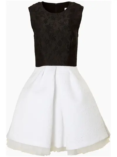 white/black two-tone design jacquard crew neck rear zip fastening belted waist