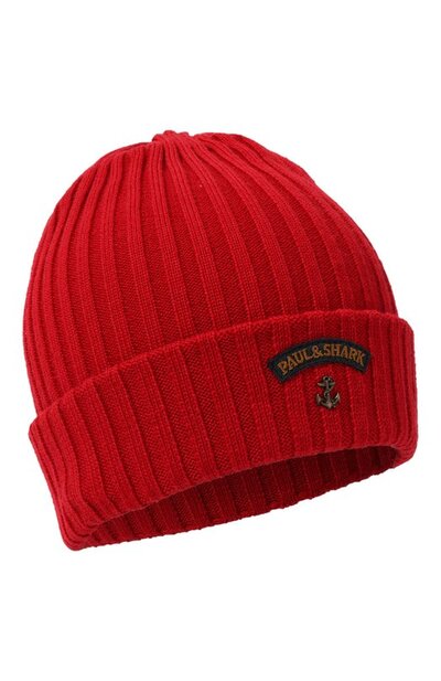 Для изготовления шапки насыщенного красного оттенка мастера марки использовали мягкую плотную шерсть. Аксессуар, выполненный фактурной вязкой, поддерживает комфортный микроклимат. В этом изделию помогает и широкий отворот, дополнительно защищающий от холода. Модель украсили брендированным патчем и накладкой в форме якоря.