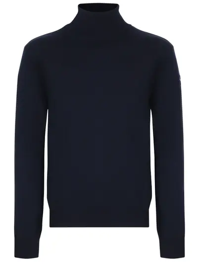 -Темно-синяя водолазка из шерсти от PAUL&SHARK. -Модель полуприлегающего силуэта с длинными рукавами с нашивкой логотипа на плече, рельефными манжетами, поясом и воротником с отворотом. -Маркировка Cool Touch 4.0.