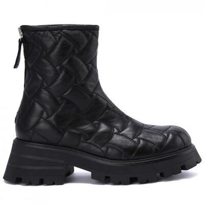 Ботинки из натуральной кожи в чёрном цвете от Principe di Bologna. Ботинки в лаконичном дизайне идеально подойдут на каждый день. Модель выполнена из натуральной кожи, с декоративной строчкой и на высокой резиновой подошве. Элементом декора и функциональности служит задняя застёжка на молнию. Подкладка и стелька выполнены из натуральной кожи, а высокая подошва с объёмным протектором - из резины.