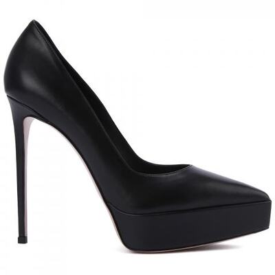 Туфли из натуральной чёрной кожи от Le Silla. Современные, но элегантные, новые туфли-лодочки Uma от Le Silla представляют собой смелую интерпретацию культовых туфель-лодочек Eva, к которым была добавлена удобная 40-миллиметровая платформа, чтобы сбалансировать дерзкую 130-миллиметровую шпильку, делая ее удобной и шикарной. Изготовленные в Италии из полу полированной чёрной телячьей кожи, они представляют собой настоящий маст-хэв, который подойдёт к любому предмету в вашем гардеробе.