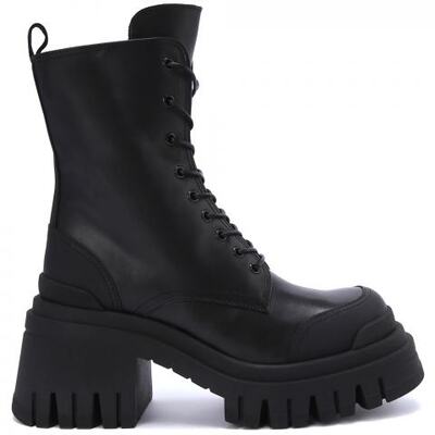 Черные ботинки на массивной подошве от Principe di Bologna легко впишутся в базовый гардероб. Модель выполнена из натуральной кожи, на высокой подошве и каблуке. Задняя часть дополнена петлёй для комфортного обувания. Модель оснащена шнуровкой и удобной застёжкой-молнией сбоку. Такая пара эффектней всего будет смотреться в образах с юбками или платьями длины мини или с более длинными юбками с высокими разрезами. Пара утеплённая, с шерстяной подкладкой и стелькой из натурального меха.