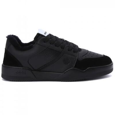 Утеплённые кроссовки из натуральной кожи от DSQUARED2. Кроссовки в городском стиле идеально подойдут на роль повседневной пары для холодного времени года. Кроссовки выполнены из гладкой чёрной кожи с замшевыми вставками, на высокой резиновой подошве в цвет. Внутри подкладка и стелька из меха, а значит в них можно ходить даже по снегу. На носке предусмотрена перфорация, за счёт чего в кроссовках не будет жарко в помещении. На язычке фирменный логотип бренда DSQUARED2.