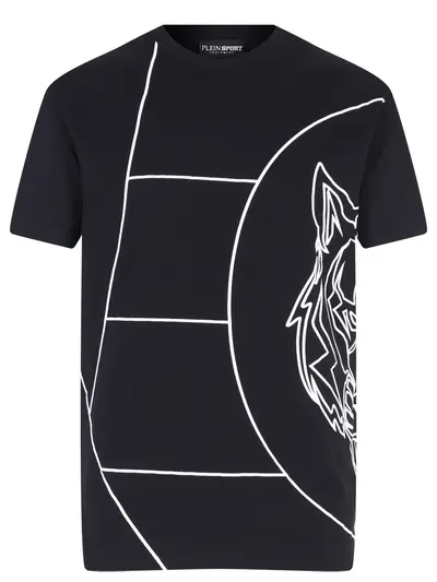 -Черная футболка из хлопкового джерси с принтом от PLEIN SPORT.