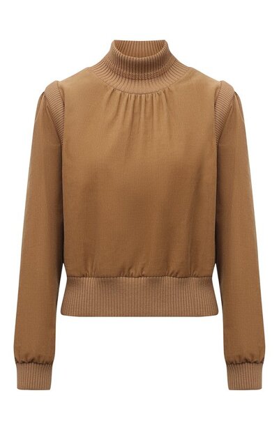 У свитшота лаконичного бежевого цвета есть неоспоримое преимущество: он органично сочетается с вещами любых оттенков. Для изготовления модели мастера марки, основанной Ивом Сен-Лораном, использовали мягкий хлопковый вельвет, а для отделки — эластичный трикотаж. Энтони Ваккарелло включил изделие в весенне-летнюю коллекцию.