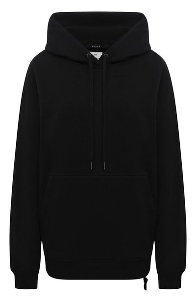 За счет универсального черного оттенка и минимума декора свободное худи из коллекции сезона осень-зима станет хорошим вложением в повседневный гардероб. Мастера марки сшили модель из мягкого легкого хлопка. За счет бархатистой на ощупь изнанки материал сохраняет тепло лучше обычного джерси, но так же хорошо пропускает воздух, обеспечивая комфорт в прохладную погоду.