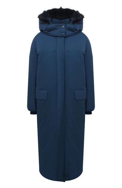 Синее утепленное пальто с двумя карманами защитит не только от холода, но и от капризов погоды. Стеганая модель из непромокаемой и непродуваемой ткани дополнена съемным капюшоном с мехом песца, окрашенным в тон материалу. Очищенное от декора изделие из осенне-зимней коллекции марки, основанной Пьетро Лоро Пьяна, застегивается на молнию, прикрытую ветрозащитной планкой.