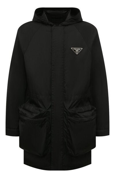 Создавая черный плащ, Миучча Прада отдала роль акцентов крупным накладным карманам спереди. Для пошива модели использовали прочный непродуваемый материал Re-Nylon. Его произвели из переработанного пластика, собранного в океане. Это позволило сократить вредные выбросы, количество отходов и сэкономить ресурсы.