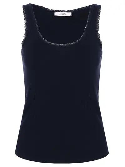 -Майка хлопковая синего цвета с кружевной отделкой от DOROTHEE SCHUMACHER.