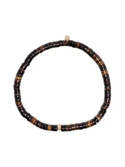 14kt yellow gold bead detailing pavé-set diamonds elasticated