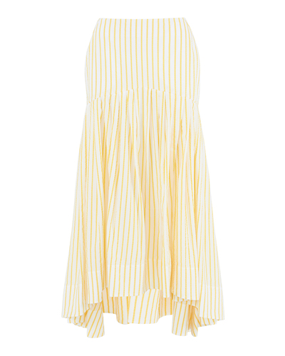 Юбка макси из хлопка в желтую полоску. Модель с комфортной посадкой и объемной отделкой.