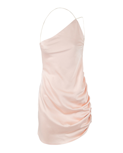 Платье NINEMINUTES сшито из атласного материала розового оттенка. Модель длины мини в коктейльном стиле выполнено с открытой спиной и дополнено тонкими завязками.
