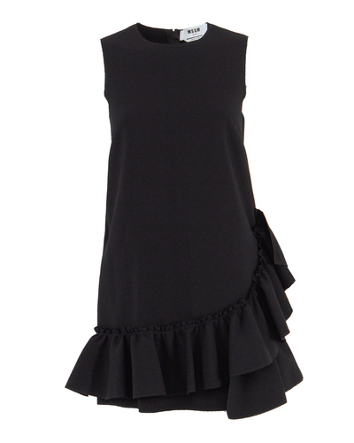 Платье MSGM из слегка эластичного материала черного цвета. Модель длины мини с отделкой рюшами и застежкой на молнию на спине.