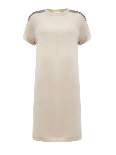 Brunello Cucinelli Хлопковое платье French Terry с вышивкой Мониль на плечах 236515 (бежевый, lpn23085312)