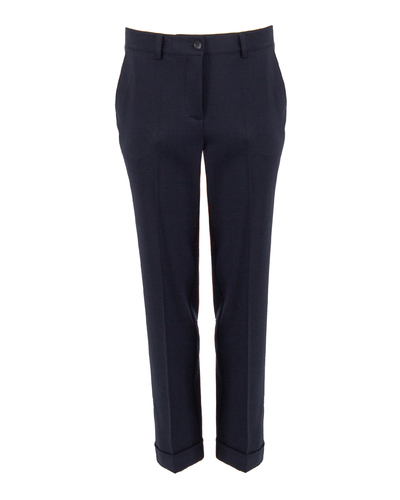 Брюки P.A.R.O.S.H. из костюмной шерсти с отворотами. Модель прямого силуэта со стрелками и двумя карманами по бокам.
