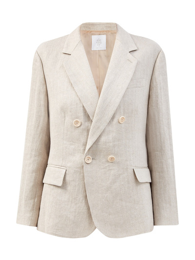 Eleventy Двубортный жакет из льняной ткани с мерцающей нитью ламе 236649 (бежевый, lpn23144295)