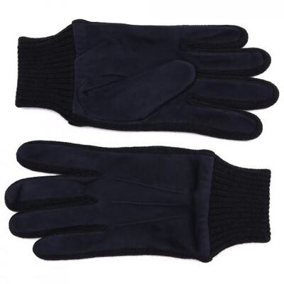 Перчатки из натуральной мягкой замши из зимней коллекции итальянского бренда Fabi. Пара перчаток из замши подойдёт к любому образу. Перчатки выполнены из натуральной замши тёмно-синего цвета, с декоративной строчкой и трикотажными манжетами. Внутри тёплая шерстяная подкладка. Длина перчаток - 26 см.