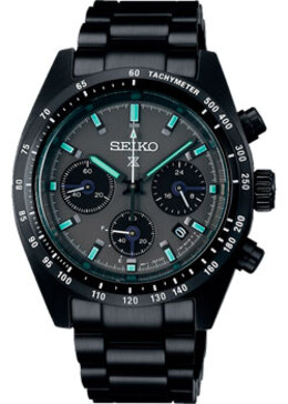 Кварцевый хронограф на солнечной батарее. Водостойкость WR 100. Калибр механизма V192. Запас хода 6 месяцев при полной зарядке. Индикатор запаса хода. Часы, минуты, секунды. Индикация даты. Тахиметр. Черный циферблат с часовыми индексами в виде штрихов. Стрелки и метки с люминесцентным покрытием. Корпус выполнен из нержавеющей стали с PVD покрытием. Размеры корпуса 39 мм х 46 мм, толщина 13 мм. Устойчивое к возникновению мелких механических повреждений сапфировое стекло. Браслет выполнен из нержавеющей стали с PVD покрытием. Ширина браслета 20 мм.