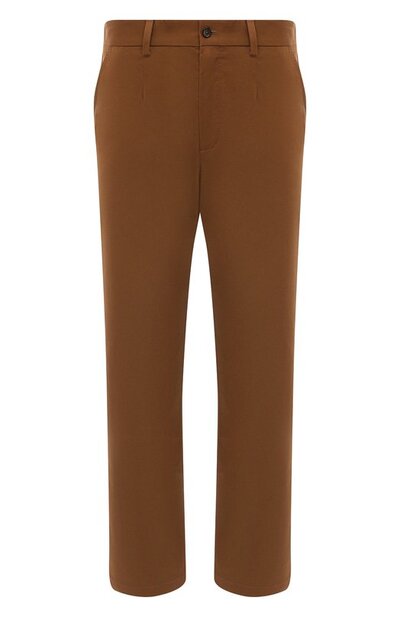 У этих чиносов коричневого оттенка есть все шансы стать любимыми брюками на каждый день. Лаконичный дизайн делает модель универсальной, а прямой крой и тонкий габардин из отборного хлопка гарантируют комфорт. В мягкий текстиль вплетены эластановые нити, поэтому изделие дает полную свободу движений.