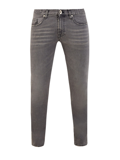 Мужские джинсы укороченного кроя от Eleventy выполнены из эластичного денима. Неоднородный серый оттенок с выбеленным эффектом подчеркивает расслабленный стиль изделия, потертости на швах придают образу настроение в стиле sprezzatura. Детали: пять карманов, брендированная фурнитура, логотип на заднем кармане. Сделано в Италии.