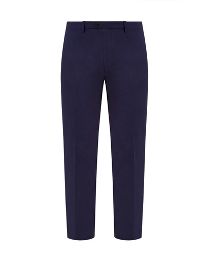 Классические костюмные брюки от Etro созданы из благородной шерстяной ткани с гладкой текстурой в темно-синем оттенке. Строгий стиль подчеркнут традиционными брючными карманами — диагональными спереди и карманами на пуговицах с бортами на спинке, а также застежкой на молнию и две пуговицы. Комфорт обеспечивает мягкая внутренняя отделка швов и вытачки для посадки по фигуре. Сделано в Италии.