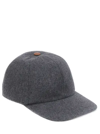 -Бейсболка серого цвета из мягкой шерсти от LORENA ANTONIAZZI. -Модель-шестиклинка с изогнутым козырьком, регулируемым ремешком объема на затылке для комфортной посадки.