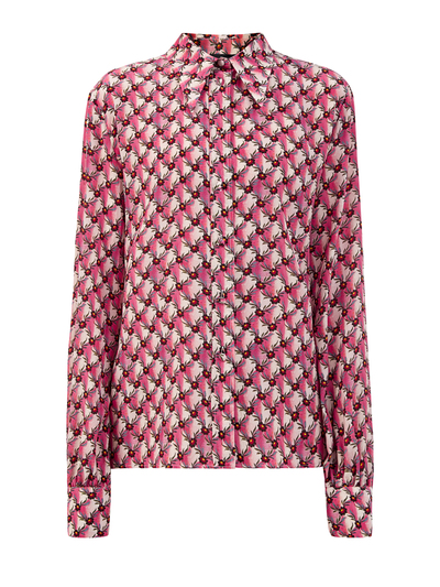 Свободная блуза от Etro выполнена из натурального шелка с легкой струящейся текстурой. Поверхность изделия дополнена флористическим орнаментом в теплой бежево-розовой гамме, объемные рукава вносят в повседневный образ штрих в богемном стиле бохо. Классический крой подчеркнут отложным воротом и застежкой на обтянутые тканью пуговицы. Сделано в Италии.