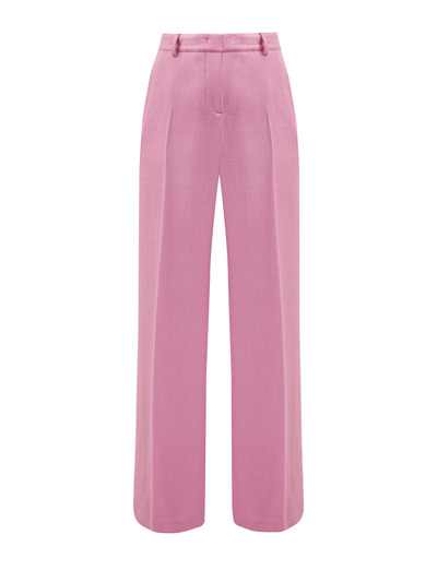 Стильные женские брюки расклешенного кроя от Etro выполнены из тонкой шерстяной ткани с древесными волокнами вискозы в составе. Нотку стиля эпохи 90-х модели придает высокая посадка и заложенные складки от линии талии. Изделие в актуальном пастельно-розовом оттенке дополнено шлевками для ремня и прорезными боковыми карманами. Сделано в Италии.