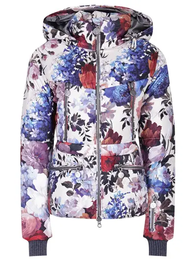 -Черный с цветочным принтом стеганый пуховик от NAUMI.