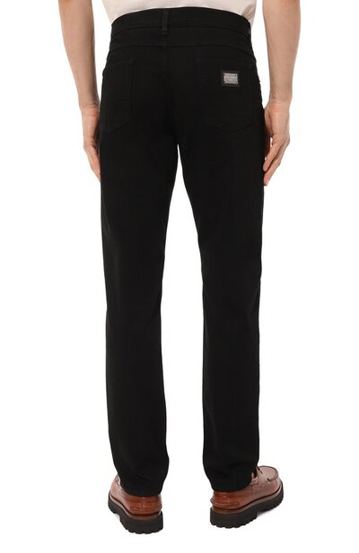 Черный цвет, отсутствие яркого декора и потертостей: прямые джинсы в исполнении Доменико Дольче и Стефано Габбаны справятся с ролью брюк для офиса с нестрогим дресс-кодом. За комфорт в течение дня отвечают крой с классической посадкой и мягкий деним, не мешающий воздуху циркулировать. Эластан в его составе помогает модели лучше адаптироваться к фигуре и сохранить свободу движений.