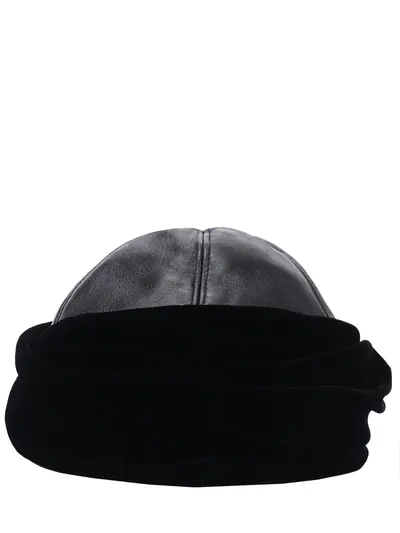 -Черная шапка из кожи и вискозного бархата от GIORGIO ARMANI.