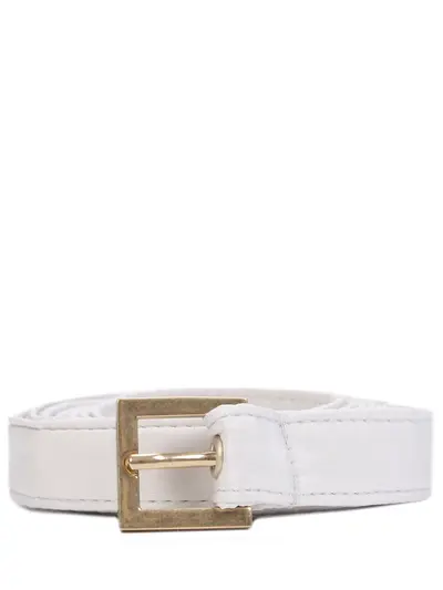 -Текстильный пояс белого оттенка из LORENA ANTONIAZZI. -Небольшая пряжка из золотистого металла квадратной формы. -Акцентный аксессуар станет дополнением плаща, платья или украсит пояс брюк в любой цветовой палитре.