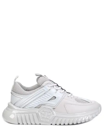 -Серые комбинированные кроссовки из кожи и сетчатого текстиля от PHILIPP PLEIN.
