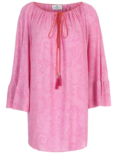 -Розовая туника из вискозы с принтом пейсли в тон от ETRO.