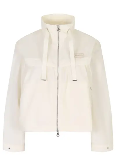 -Модель свободного кроя со спущенной линией плеча, длинными рукавами, прорезными карманами на молниях, воротником-стойкой, застежкой на молнию.