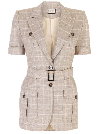 -Бежевый клетчатый пиджак из микса вискозы и льна от SHATU.
