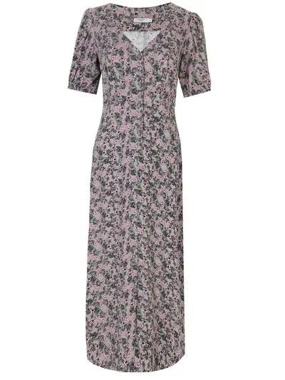 -Платье-макси из мягкой вискозы с цветочным принтом от SEVEN LAB. -Женственная модель приталенного кроя с юбкой А-силуэта, короткими рукавами с манжетами на резинке, V-образным вырезом на груди с застежкой на пуговицы.