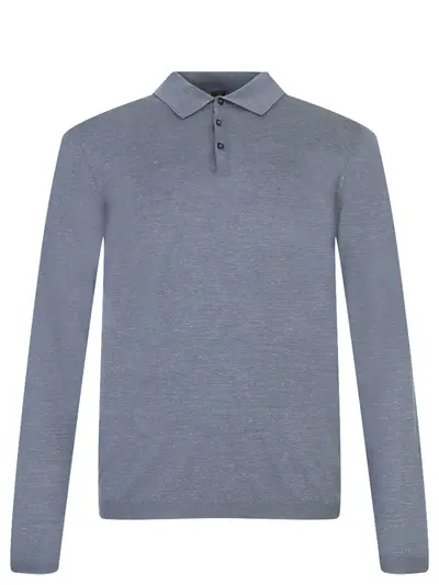 -Серо-голубое меланжевое поло купажированного состава от STILE LATINO.