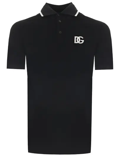 -Черное поло из хлопка от DOLCE&GABBANA.