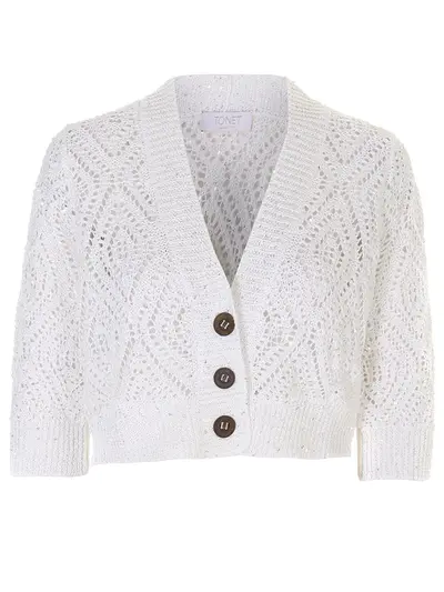 -Укороченный вязаный кардиган из смесового льна с добавлением хлопка в белом цвете от TONET.
