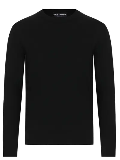 -Черный базовый джемпер из тонкой шерсти от DOLCE&GABBANA.