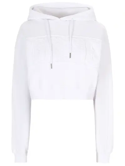 -Белое укороченное худи из хлопка от COMME DES FUCKDOWN. -Модель свободного силуэта со спущенной линией плеча, длинными рукавами, эластичными манжетами и поясом, капюшоном на кулиске, логотипом спереди.