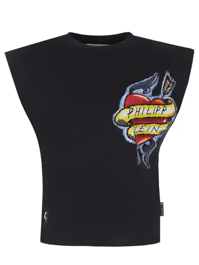 -Черный топ из мягкого хлопка от PHILIPP PLEIN.